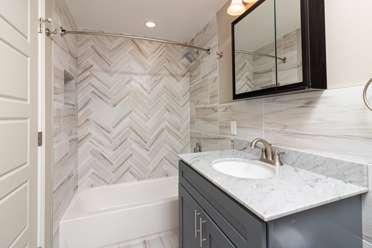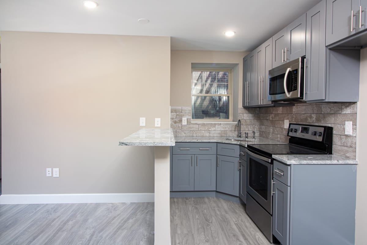 ✔️ GRANITE COUNTERTOP, DESIGNER TILED BACKSPLASH, & BREAKFAST BAR